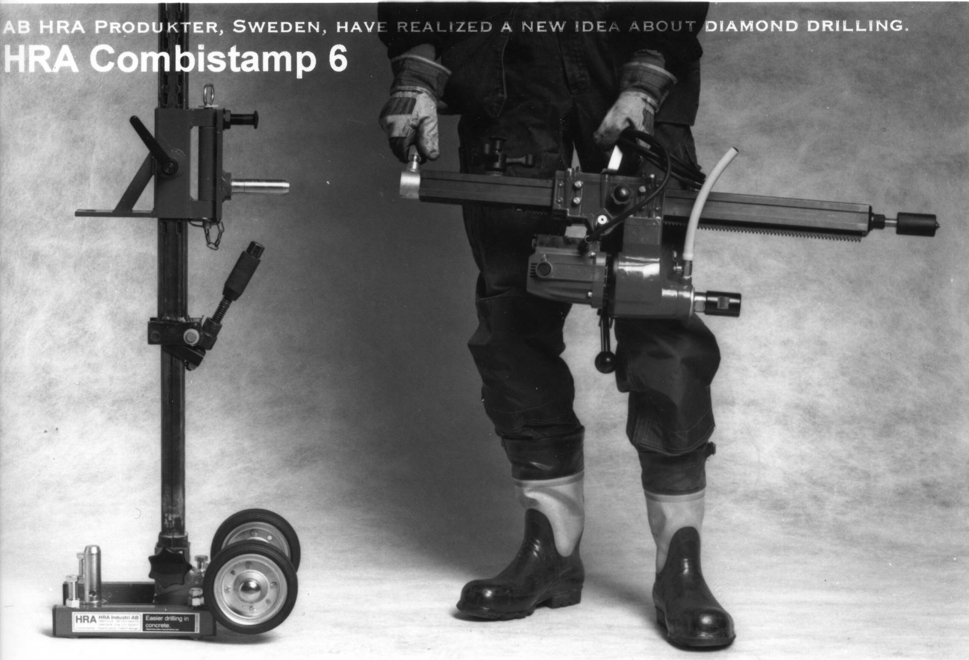 Helge R Andersson i Partille utvecklade borrstativet Ni ser i filmen under många år. Patentet såldes senare, år 2004 till Husqvarna AB